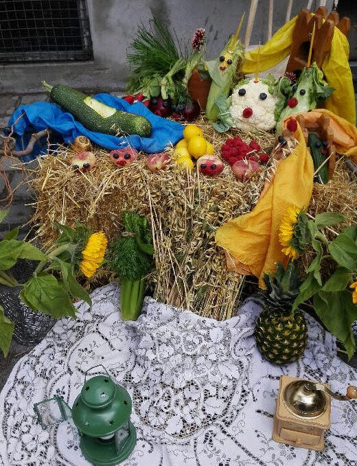 I begyndelsen af september fejres Høstfesten. Årets første større arrangement er den dag, hvor vi tager ud til bondegården. Vi møder dyrene og med bonden høster vi lidt korn med le. Kornet tager vi med hjem og tærsker og kværner. Melet bager vi til brød og af mælkens fløde laver vi smør. Derefter inviterer vi alle børnehavens familier med til festen, hvor vi synger høstsange og nyder vores bagværk.